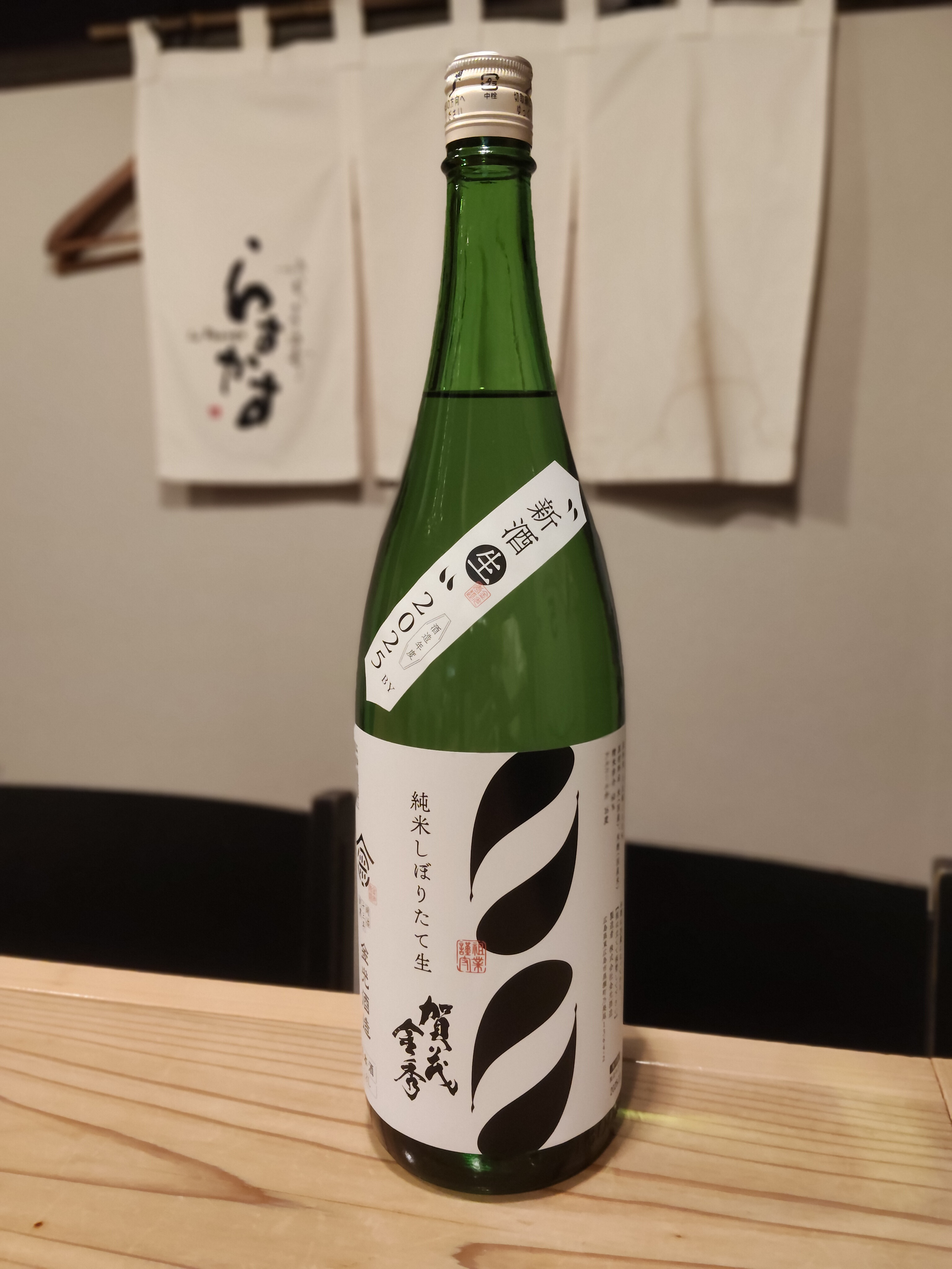 この「黒い波のような模様」のラベルは、賀茂金秀のスタンダードなデザインで、洗練されたモダンな印象を与えます。新酒ならではの力強さと爽やかさをぜひ堪能してください!